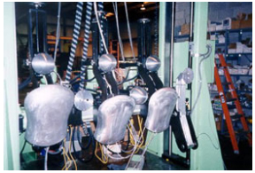 Sistem uji kursi mobil TMSI memungkinkan produsen kursi mobil untuk melakukan tes yang berbeda dengan hanya 10 menit waktu penggantian antara mereka. Tiga aktuator hidraulik dipasang pada crosshead yang dapat diputar dan elevator digerakkan ke atas dan ke bawah untuk memposisikannya untuk berbagai pengujian. Desain ini merupakan keuntungan besar bagi produsen kursi mobil, yang seharusnya harus membeli mesin terpisah untuk setiap pengujian.