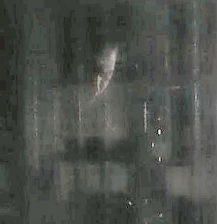 Refleksi seorang wanita muda di kaca pintu yang ditangkap oleh kamera TSS padahal tidak ada peneliti wanita saat investigasi.
